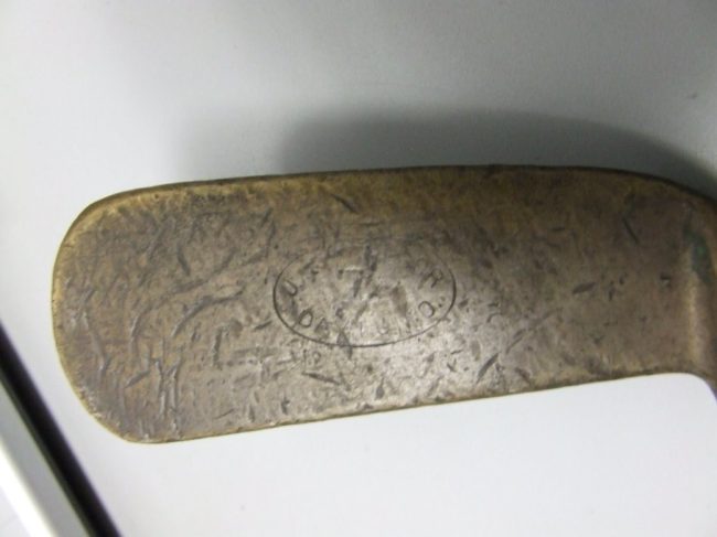 Object Name: Club, Golf Other Name: CLUB, METAL, WOOD SHAFT Date: 1897—1899 Year Range from: 1897 Year Range to: 1899 Description: Wrapped tape grip, natural wood shaft, brass clubhead. Faint maker’s mark. Shaft stamp. Maker: MACGREGOR Dimension Details: Overall: 35—1/2″; grip: 10—3/8″; blade: 5″ (hosel to toe)3—3/4″ x 1—3/8″ x 3/8″ Marks/Inscriptions: PUTTER by J.…