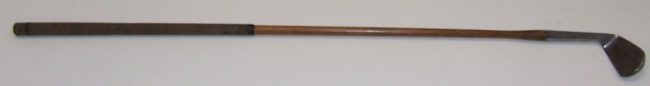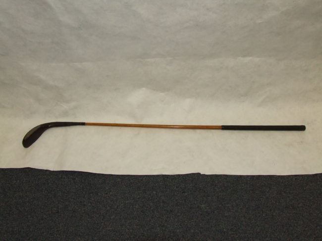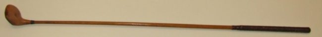 Object Name: Club, Golf Other Name: CLUB, WOOD, WOOD SHAFT Date: 1895—1905 Year Range from: 1895 Year Range to: 1905 Description: Suede grip, wooden club with scared neck, brass sole plate, horn insert, face insert, maker’s mark and shaft stamp. White dogwood clubhead and hickory shaft, both with natural finish. Maker: WRIGHT & DITSON Material:…
