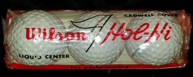 Object Name: Set, Golf Balls Other Name: Set, Ball, liquid Date: ca 1960’s Year Range from: 1960 Year Range to: 1969 Description: Set of 3 Wilson, Hol—Hi liquid—core golf balls in dimple pattern. Cadwell cover, painted white with black and red markings. Maker: Wilson Sporting Goods Company, Chicago Material: liquid Dimension Details: 1.68″ (diameter) Marks/Inscriptions:…