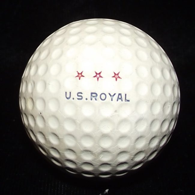Object Name: Ball, Golf Other Name: Ball, rubber—core Date: unknown Description: U.S. Royal rubber—core golf ball in dimple pattern. Maker: U.S. Royal (U.S. Rubber Co.), New York, New York Material: rubber Dimension Details: 1—5/8″ (diameter) Marks/Inscriptions: U.S. ROYAL (both sides) Object ID: B 46